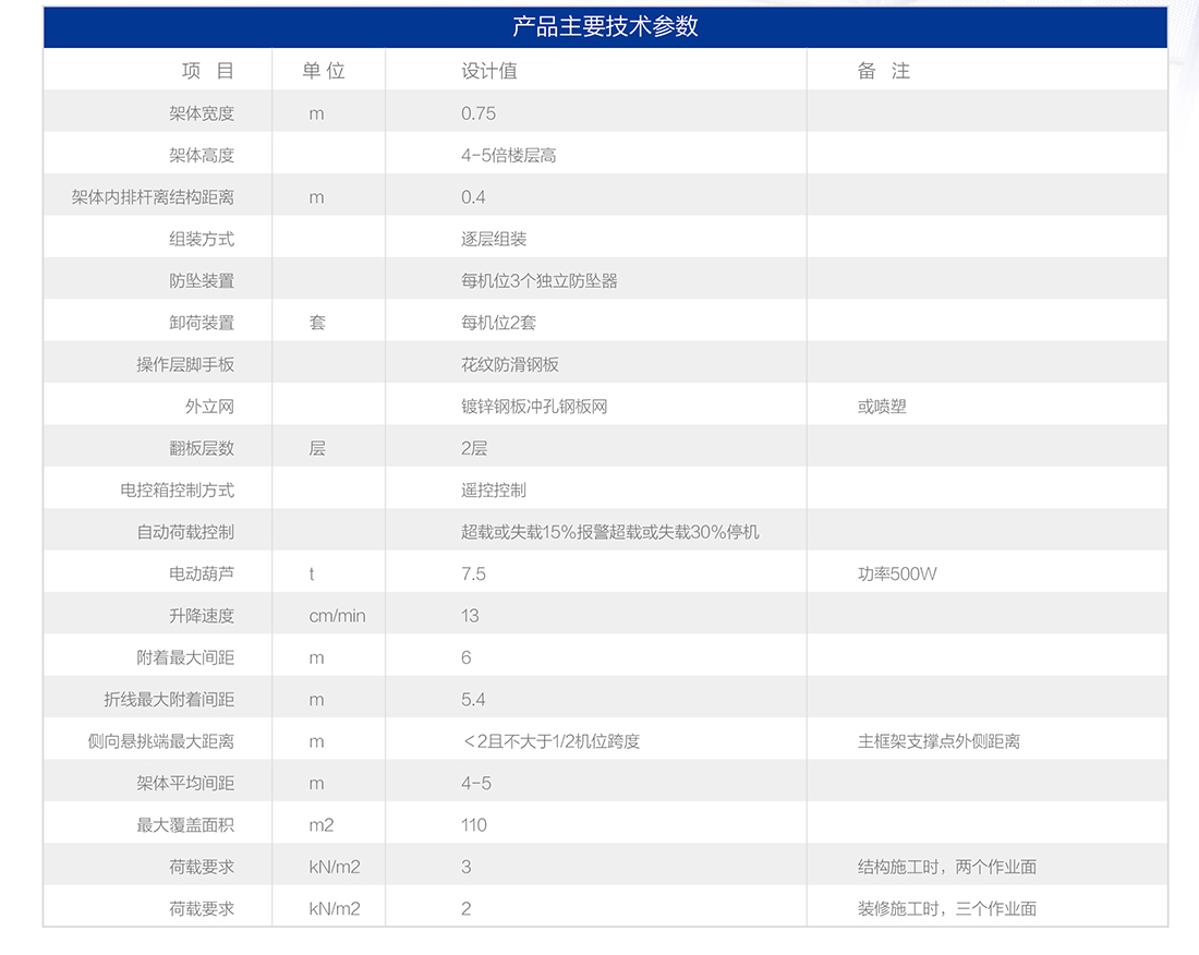 4、每个提升机位具有3套安全防坠装置,防坠装置全天候工作,安全可靠。设计安装有刚性的竖向主框架及水平桁架。架体外立面全部为桁架结构,架体不易变形,稳定性好。